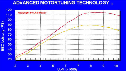 | Leistung am Hinterrad + Exhaust-System: | LKM | 122 PS | (89,7 kW) | bei 8.900/min | |